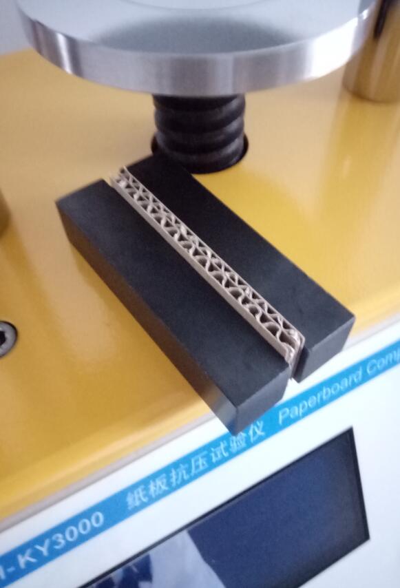 (2)開動(dòng)壓縮儀,以(12.5±2.5)mm/min 的速度對(duì)裝有試樣的附件施壓,直至楞峰和面紙(可 芯紙)分離為止。記錄顯示的最大力,精確至 1N